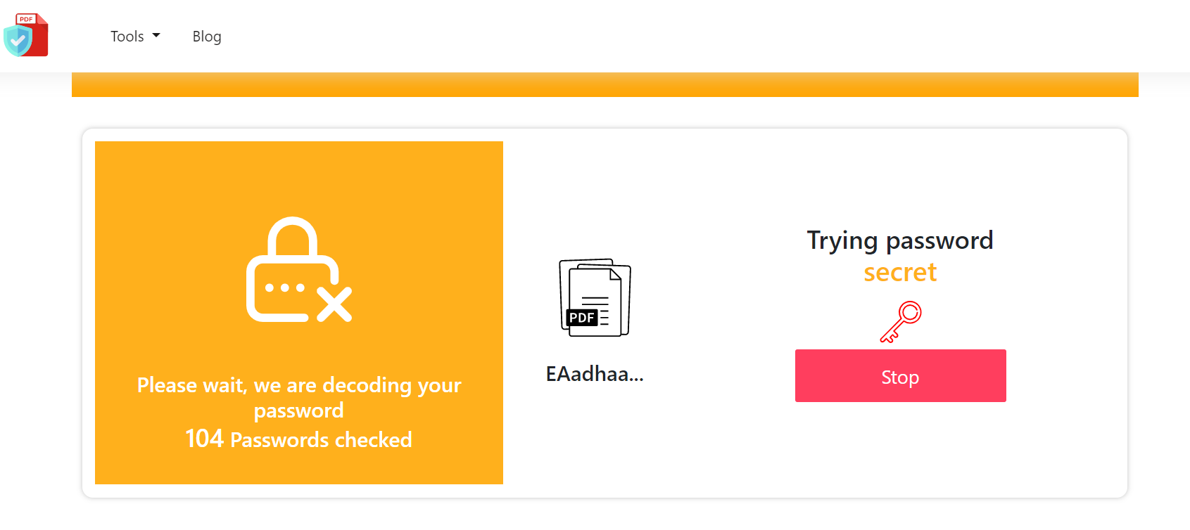 When you upload a PDF on the site, it gives you the option to try different passwords. You can also let the tool try innumerable passwords on its own to check which one matches.