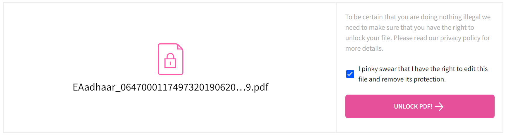 Now hit the giant red Unlock PDF button on your bottom right.